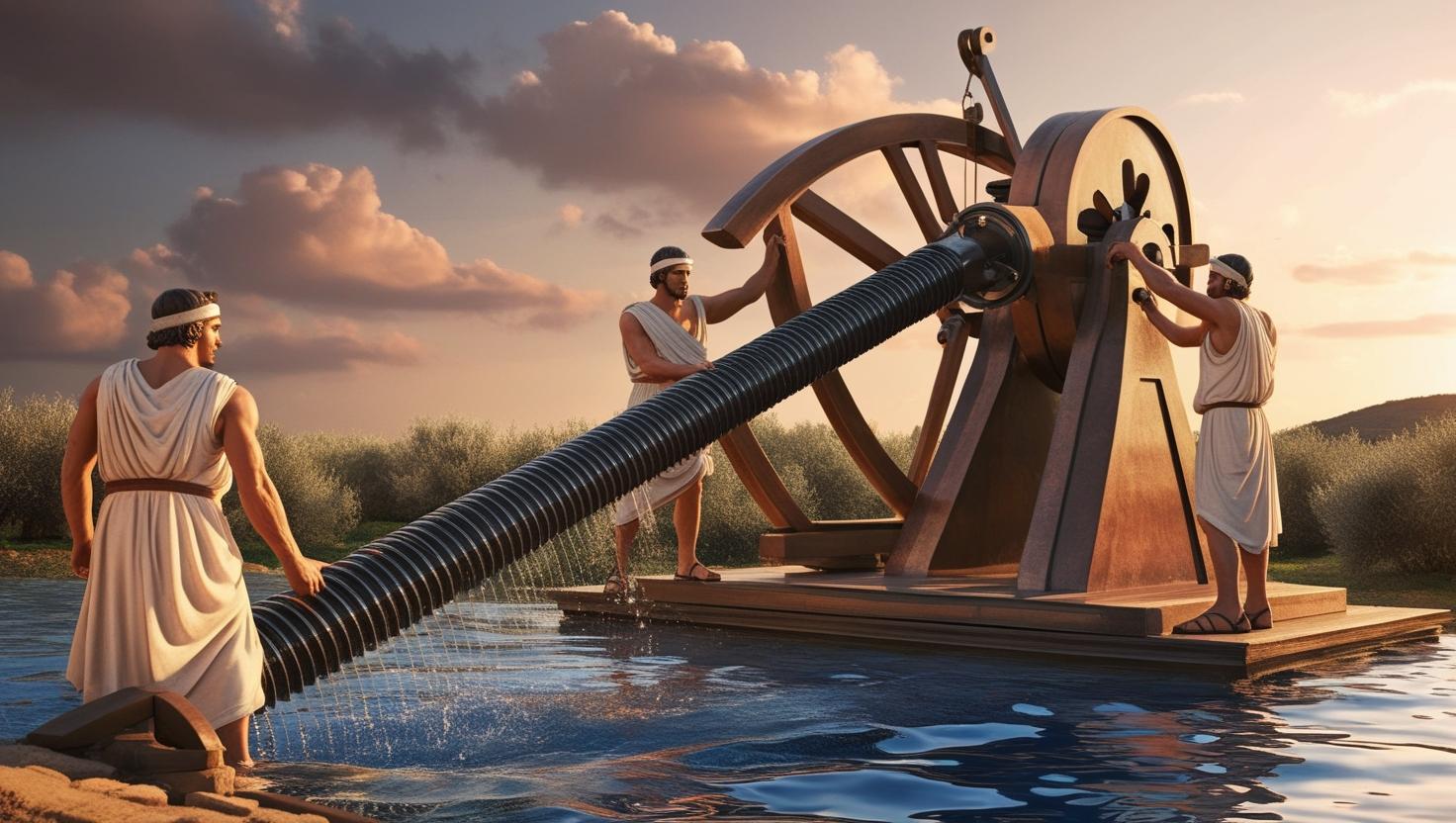 Die archimedische Schraube, die ursprünglich zur Wasserförderung erfunden wurde, wird bis heute weltweit in Kläranlagen und zur Bewässerung eingesetzt. Sie ist ein perfektes Beispiel dafür, wie antike griechische Innovationen noch immer unser modernes Leben beeinflussen!