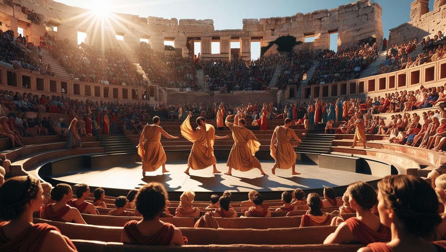 Die Griechen revolutionierten das Theater mit architektonischen Meisterwerken. Amphitheater wie das berühmte Theater von Epidaurus boten Platz für bis zu 25.000 Zuschauer und zeichneten sich durch eine außergewöhnliche Akustik aus. Selbst in den hintersten Reihen konnte man die Darsteller klar und deutlich hören – ohne moderne Technik!